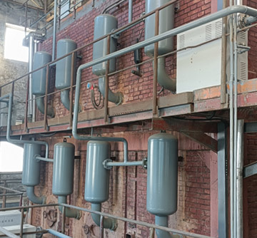 燃?xì)饧げù祷移鞯墓ぷ髟硎抢每扇細(xì)怏w如瓦斯氣、乙炔氣、煤氣、天然氣、液化石油氣等常用氣體燃料,與空氣經(jīng)各自的測(cè)控管路調(diào)控后,均勻混合,在特殊設(shè)計(jì)的燃燒室內(nèi)產(chǎn)生爆燃、爆轟,經(jīng)輸出管上的噴口發(fā)射出脈沖激波。能量被引導(dǎo)至被作用管束附近,以高溫、高速的氣流伴隨著巨大的聲強(qiáng)作用到換熱管束表面,通過(guò)波形擾動(dòng)、氣流沖刷、高溫膨脹、聲壓震蕩以及沖擊振打等多種模式的綜合作用,達(dá)到清除管束表面積灰的目的。